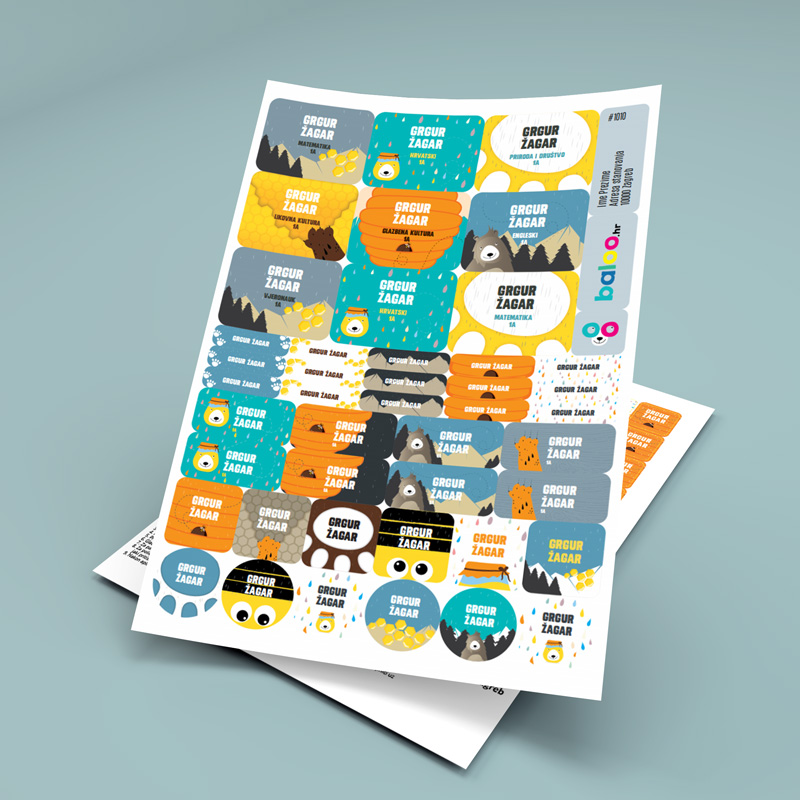 Nalepke za šolsko opremo so v petih velikostih in treh oblikah (pravokotna, kvadratna in okrogla).