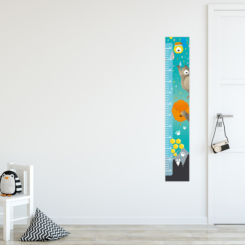 Da bi lažje sledili njegovemu razvoju, ponujamo simpatično zidno nalepko, s katero boste lažje merili višino otroka. Ker ima nalepka močno lepilo, jo lahko lepite tudi na druge ravne podlage, kot sta steklo in les. Z nalepko lahko merite višino otroka do 160 cm.
