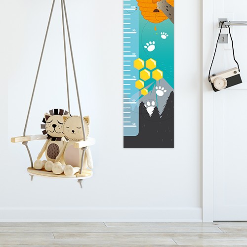 Da bi lažje sledili njegovemu razvoju, ponujamo simpatično zidno nalepko, s katero boste lažje merili višino otroka. Ker ima nalepka močno lepilo, jo lahko lepite tudi na druge ravne podlage, kot sta steklo in les. Z nalepko lahko merite višino otroka do 160 cm.